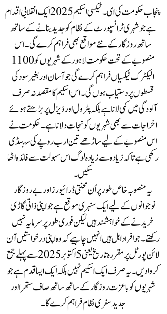 The Punjab e-Taxi Scheme 2026 is a forward-looking initiative that combines clean technology, financial support, and employment generation. By offering interest-free installments and easy loan facilities, the government has made it possible for hardworking individuals to own electric taxis and improve their standard of living.