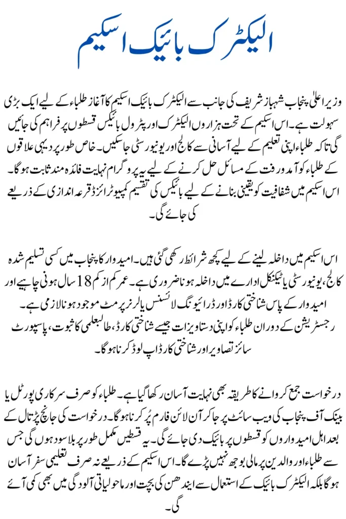 Eligibility Criteria for Shahbaz Sharif Electric Bike Scheme